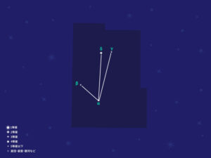 わし座 α星「アルタイル」、みなみのうお座α星「フォーマルハウト」の間にある星々で、小さな逆三角を形づくる。