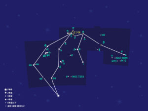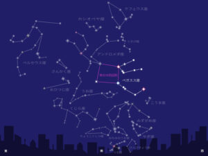 北半球にある日本では、初秋のころ南の空に見ることができる星座。