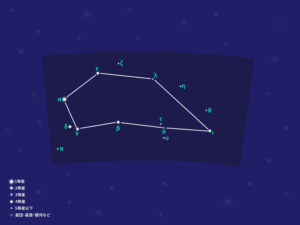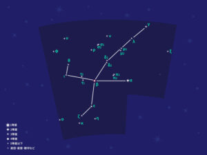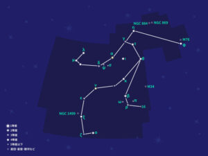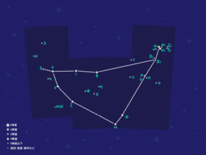 北半球にある日本では、秋から冬にかけて北東の空に見ることができる星座。